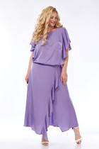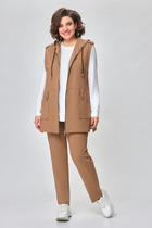 Блузон, с центральной застежкой на петли и пуговицы, отложным воротником. По переду отрезная планка. Рукав втачной, длинный. Брюки прямые, с отрезным поясом. Пояс присборен на резинку.