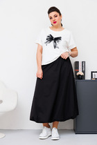 Жилет с центральной застежкой на петли и пуговицы. По переду с рельефами, выходящими из проймы и талиевыми вытачками, прорезными карманами с листочками. По спинке со средним швом, рельефами, выходящими из проймы. Полочки жилета на подкладке. Брюки прямые, с отрезным поясом. Пояс присборен на резинку. На передних половинках расположены карманы. Вход в карман наклонный к боковому шву.