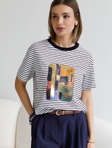 Свободная футболка в черно-белую полоску с принтом из премиального хлопка с элас