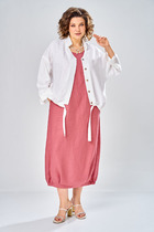 Жакет с центральной двубортной застежкой на петли и пуговицы, без воротника, с отложными лацканами. По переду с рельефами, выходящими из проймы до низа. По спинке со средним швом и рельефами, выходящими из проймы до низа. Жакет со сьемным поясом. На уровне линии талии расположены шлевки для пояса. Юбка без пояса, верхний срез обработан обтачками. Заднее полотнище со средним швом, застежкой на потайную молнию в среднем шве. Юбка силуэт- годе,с рельефными швами по переднему и заднему полотнищу.
