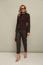 Джемпер свободного силуэта, вырез горловины округлый. Рукав спущенный длинный. По переду драпировка на завязке из основной ткани. Джемпер без застежки.