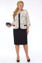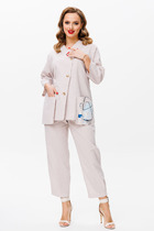Костюм женский, состоящий из джемпера и юбки. Джемпер полуприлегающего силуэта из мягкого трикотажного полотна с добавлением ангоры со втачными немного спущенными рукавами и округлым вырезом горловины. По переду дизайнерская вышивка. Юбка полуприлегающего силуэта, зауженная книзу, на эластичной подкладке с притачным поясом на резинке; по спинке шлица. Рекомендована бережная стирка при t 30; глажение при максимальной температуре прессующей поверхности утюга не более 110 С.