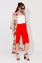 Комплект брючный 3-х предметный состоит из жилета, брюк и джемпера. Жилет из костюмно-плательной ткани прямого силуэта. Горловина V-образной формы. По переду фигурные кокетки, рельефные швы.  Застежка центрально — бортовая на петли и пуговицы. Спинка разрезная с кокеткой. По боковым швам разрезы. На плечевых швах паты с пуговицей. Брюки средней посадки, заужены к низу. По переду боковые карманы с подрезным бочком. По задним деталям накладные карманы. Пояс в 58-62 размере частично на резинке. Джемпер из трикотажного полотна. Рукав спущенный. По переду печать.