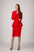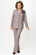 Комплект женский брючный. Джемпер свободного кроя, изготовлен из трикотажного полотна. Перед разрезной с фигурным низом. Горловина обработана воротником -хомут. Спинка цельнокроеная. Декором служит вышивка — аппликация. Брюки женские, средней посадки выполнены из экокожи. Обработаны боковые карманы. Пояс на резинке. На передних деталях брюк застрочен кант