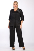 Комплект женский двухпредметный состоит из платья и жилетки. Платье свободного силуэта выполнено из трикотажного полотна ( лапша ). Перед и спинка цельнокроеные. Рукава спущенные. Жилетка выполнена из искусственной кожи на вискозной основе, А — силуэта. Перед со средним швом и асимметричным декоративным элементом. Спинка разрезная по центру.