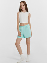 Костюм детский топ и шорты. Топ расклешенного силуэта на бретелях из окантовки с отрезной планкой по низу и притачным кантом в качестве отделки. Низ изделия — подгибка. Шорты с цельнокроенным поясом и притачной резинкой. Низ изделия — подгибка.