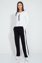 Женский костюм, состоящий из лонгслива с круглым вырезом, рукавом реглан и принтом и брюк со вставкой боковой полоски, - это модный и современный наряд для активной и уверенной в себе женщины. Лонгслив придает образу женственность и элегантность. Брюки со вставкой боковой полоски выгодно выделяют силуэт и создают контраст с лонгсливом. Ткань френч терри (2-х ниточный футер) с невероятно нежным внутренним слоем, качество Пенье, плотность 235 г.м2
