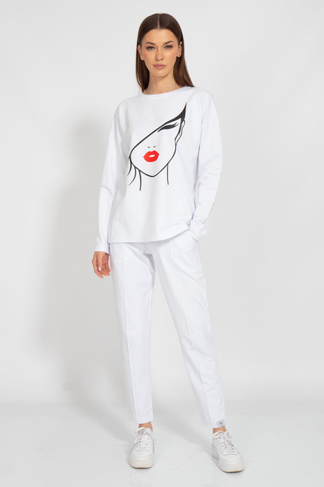 Спортивный костюм из нежного хлопка с актуальными и современными принтами - это отличный выбор для тех, кто ценит комфорт и качество. Ткань из хлопка обеспечивает максимальную мягкость и приятность на ощупь. Костюм легкий и прочный, что позволяет свободно двигаться и не ограничивает движения. Он подходит для занятий спортом и активного отдыха. Это отличный выбор для тех, кто хочет выглядеть стильно и чувствовать себя комфортно. Идеально в сочетании с джемперами модели 40381, а так же свитшотами 3098