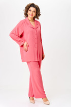 Этот костюм из блестящей пудровой ткани, состоящий из блузы и брюк, представляет собой гармоничное сочетание элегантности и современного стиля. Блуза украшена двумя нагрудными карманами, контрастными черными пуговицами и изысканными декоративными бантами, добавляющими утонченность и женственность. Прямые брюки свободного силуэта с карманами в боковых швах обеспечивают комфорт и создают элегантный образ. Этот костюм идеально подходит для создания стильного и эффектного наряда, подчеркивая вашу индивидуальность и безупречный вкус.