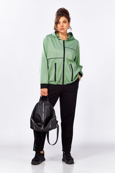Стильный спортивный костюм из трикотажной ткани, идеальное решение для активных и модных девушек. Бомбер с капюшоном и накладными карманами. Застежка на молнию. Яркий акцент придает контрастная отделка в цвет брюк. Брюки свободного кроя, пояс на резинке, с прорезными карманами. По боковым швам, отделочная строчка "распашивалка" в цвет бомбера. Сочетание качественного трикотажа, удачного фасона, ярких акцентов и модного цвета, делает костюм не только удобным в носке, но и стильным, в нем вы будете выглядеть ярко и привлекательно.