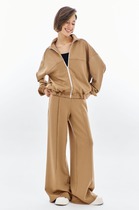 Жакет женский из мягкой костюмно-плательной ткани с креш-эффектом, свободного силуэта, длиной ниже линии бедер, со спущенной линией плеча, с втачными рукавами, в боковых швах обработаны разрезы, со съемным поясом. Детали переда жакета с отрезными бочками. Деталь спинки жакета с втачной стойкой, переходящей на перед. Рукава втачные одношовные, широкие. По боковым швам на уровне линии талии прикреплены шлевки для протяжки съемного пояса.