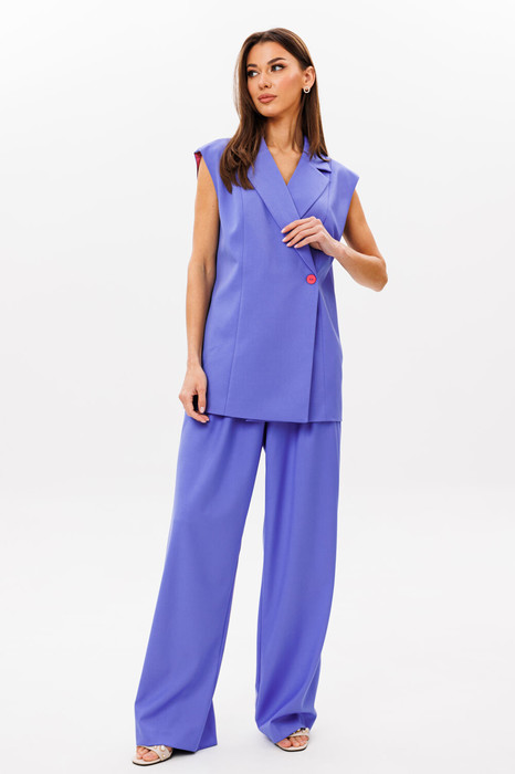 Стильный гармоничный комплект, состоящий из двубортного жилета и свободных брюк в стиле палаццо.