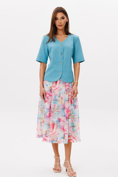 Элегантный комплект: полуприлегающий жакет с коротким рукавом и актуальной юбкой со складками.