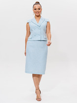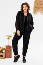 Брюки комплекта созданы в свободном стиле палаццо. В пояс брюк по спинке вставлена эластичная тесьма, шириной 3 см. Спереди пояс фиксируется горизонтально на петли/пуговицы и вертикалную закрытую клапан-молнию (гульфик).