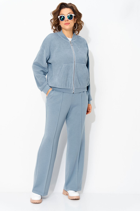 Эффектный и стильный прогулочный трикотажный костюм, состоящий из бомбера и брюк, который отлично подойдет в повседневной носке и загородного отдыха! Модель жакета-бомбера выполнена из трикотажного штрукса! Изделие свободного силуэта, с длинным рукавом на спущенном плечевом поясе. Застежка центральная на молнию. По низу рукава и низу изделия идет мягкая планка из отделочной ткани. Бомбер с накладными карманами по переду. В комплекте брюки, средней посадки, прямго покроя. Брюки с застроченными кантами по переду и боковыми карманами в швах. Пояс в брюках притачной на круговой резинке.