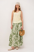 Эффектный женский костюм с брюками палаццо и свободным блузоном - это воплощение комфорта и актуального стиля! Модель выполнена из качественного легкого вискозного материала, с добавлением льна. Модный блузон-жакет с коротким рукавом, дополнен металлической молнией и стильными накладными карманами с клапаном. V-образный вырез горловины оформлен отложным воротником. Регулируемая кулиска с поясом-завязкой позволяет акцентировать внимание на талии или оставить силуэт более свободным. Брюки палаццо с широкими штанинами и высокой посадкой с боковыми карманами. Мягкая круговая резинка на поясе обеспечивает идеальное прилегание, не сковывая движений. Этот костюм-двойка — настоящий тренд, вдохновленный эстетикой pinterest (пинтерест).