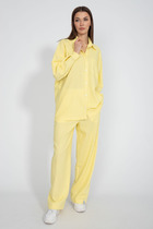 Верхний край брюк на резинке, плюс шнур. Брюки по низу на манжете, по задним половинкам вставлена резинка.