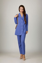 Блуза изготовлена из шифона. Перед блузы с запахом. Рукав втачной с запахом в верхней части, что обеспечивает свободу руке. Брюки зауженные к низу. Верхний край брюк на притачном поясе, по спинке от боковых швов на резинке. Застежка брюк спереди по типу «гульфик». По бокам карманы «хулиганы».