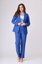 Жакет с округлым вырезом горловины, спущенной линией плеча и центральной застёжкой на петли и пуговицы. Перед с накладными карманами с отделкой в верхней части. Рукава втачные со складками по окату и манжетами по низу. Жакет на подкладке.