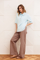 Джемпер с воротником стойкой. Перед с дизайнерскими отрезными деталями и с декоративной тесьмой и сеткой в верхней части. Спинка с талиевыми вытачками. Рукава втачные.
