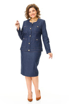 Жакет со стояче-отложным воротником пиджачного типа и центральной застёжкой на петли и пуговицы. Перед с накладными карманами в нижней части и декоративной листочкой с вышивкой в верхней части. Спинка со средним швом и талиевыми вытачками. Рукава втачные, с застёжкой на пату с пуговицей. На уровне талии съёмный пояс из ткани с вышивкой.
