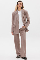 Комплект 2ка, состоящий из джемпера и брюк из мягкого трикотажа. Джемпер расширенного силуэта с V-образной горловиной, обработанной тесьмой-довязом. Рукав реглан выполнен из отделочной ткани с принтом в виде серебристых букв. Брюки прямого силуэта на эластичной резинке по талии. По переду расположены карманы с наклонным входом. Рост фотомодели 175 см. Размер у фотомодели – 44.
