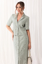 Женский костюм-тройка, состоящий из жакета, юбки и футболки. Ни один гардероб нельзя считать законченным без определенных, проверенных временем вещей, без них он просто неполноценен. Используя изделия костюма-тройки как элементы своеобразного «конструктора», вы можете разнообразить базовый гардероб. Элегантный удлиненный жакет из гладкокрашенного   полушерстяного полотна. Съемный пояс с отделкой декоративной тесьмой и металлической пряжкой. Жакет на подкладке, однобортный, с центральной застежкой на 3 петли-пуговицы. V-образный вырез удлинит силуэт и привлечет внимание к лицу. Рукава втачные двухшовные. Карманы накладные. Юбка- карандаш на подкладке, пояс в юбке с резинками в области боковых швов для лучшего прилегания. Застежка по спинке на тесьму-молнию. Средний шов спинки заканчивается шлицей. Боковые швы декорированы отделочной тесьмой. Футболке прямого силуэта молочного цвета из вискозы вы всегда найдете им применение.