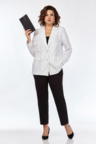 Комплект состоит из жакета и брюк. Жакет свободного кроя с цельнокроеным рукавом, по низу рукава манжета и пата. По горловине воротник рубашечного кроя, застежка на металлическую молнию. По левой стороне накладной карман с отлетным клапаном. По переду и спинке кулиса на регулируемый шнурок с фиксаторами. Брюки прямого силуэта на притачном поясе на резинке. В боковых швах прорезные карманы.