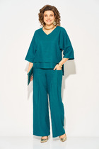 Летний комплект из футболки и шорт. Футболка свободного базового кроя. Дополнена оригинальной аппликацией и вышивкой. Рукав втачной, слегка спущен. Шорты свободного прямого кроя с притачным поясом, дополненным эластичной тесьмой. Ткань штапель. Дополнены боковыми карманами. Длина футболки от плечевого шва 65см Длина рукава 25см. Длина шорт по боковому шву 50см.