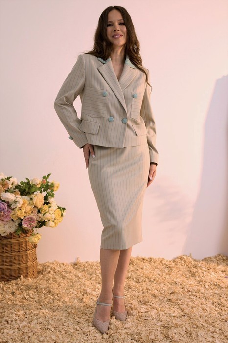 Заказать Костюм Magia mody 2619 серо-бежевый в бирюзовую полоску