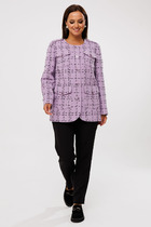 Стильный и элегантный комплект из жакета и юбки выполнен из красивой фактурной ткани. Жакет полуприлегающего силуэта с центральной застежкой на красивые пуговицы. Дополнен съемным поясом с пряжкой. Юбка миди прямого кроя со шлицей. Дополнена притачным поясом с эластичной тесьмой. Застежка на пуговицу и молнию. По спинке кокетка. Длина жакета от плечевого шва 60см. Длина рукава  25см. Длина юбки 88см.