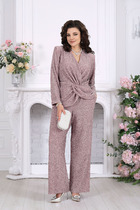 Комплект женский брючный повседневный, будет актуальным, как и для рабочих будней, также и торжественных мероприятий. Комплект свободного кроя, выполнен из легкой струящейся ткани. Блуза с коротким спущенным рукавом, круглой горловиной, ассиметричным низом, где спинка длиннее переда, по бокам имеются разрезы. Брюки- палаццо, на  поясе с резинкой, наклонные карманы в боковых швах.  Длина блузы по спинке 66+-1 см, длина рукава от горловины 29+-1см, длина брюк по боковому шву 117+-1 см, длина брюк по шаговому шву 82 +-1 см. Изделие подойдет на рост 170 см.