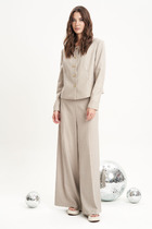 Костюм-тройка - это стильный и элегантный вариант женского делового костюма, состоящего из жилета, брюк и топа. Этот классический ансамбль придает образу серьезность и профессионализм, сохраняя при этом женственность и изысканность обладательницы. Костюм женский, брючный, выполнен из струящейся легкой вискозной ткани, состоит из распашного удлиненного жилета, свободных прямых длинных брюк и однотонного топа. Жилет прямого силуэта со съемным поясом с застежкой на полукольца, с пиджачным воротником с лацканами. Перед распашной с бортами встык, с двумя прорезными карманами с листочками. Спинка цельная. Плечо спущенное, по плечевым швам вставки из декоративной сетки. Брюки прямые, расширенные к низу, длинные, по низу с широкой подгибкой, по верху - на притачном поясе с резинкой. Топ без рукавов с квадратной горловиной по переду и рельефами. Спинка с центральным швом. Пройма и горловина спинки окантованы. Длина жакета по спинке73 см(+-1 см), длина рукава 27 см(+-1см), длина брюк по боковому шву 112 см(+-1 см), длина брюк по шаговому шву 82 см(+-1 см). Длина топа по спинке 55 см(+-1см)