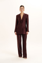 Жакет выполнен из ткани с мелким рисунком «гусиная лапка» в актуальном карамельном оттенке — он освежает образ и делает его более статусным. Свободный крой и мягкая линия плеча обеспечивают комфорт и лёгкость.
