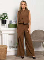Универсальный костюм, который выглядит дорого и современно, но при этом дарит комфорт и лёгкость. Его можно носить как комплект или по отдельности: жакет с асимметричной застёжкой и акцентными пуговицами легко сочетается с джинсами, а брюки свободного кроя идеально смотрятся с блузой или футболкой.