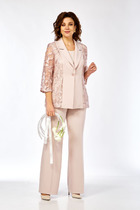 Двух-предметный комплект, состоит из блузки и брюк. Блузка выполнена из принтованного шифона, свободного покроя. Горловина обработана воротником на стойке, застежка на планку с петлями-пуговицами. Также на полочке обработаны накладные карманы с клапанам, из основной ткани. Рукав втачной, оптимальной длины, низ присборен на манжет. Спинка с отрезной кокеткой, выполнена из основной ткани. Брюки выполнены из однотонного текстиля, верхний срез на поясе, с резинкой по бокам, застежка на молнию с пуговицей. Брюки классического покроя, немного заужены к низу. Отличный комплект на все случаи жизни!