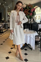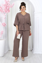 Костюм двухпредметный состоит из жакета и брюк. Элегантный дизайн костюма с брюками подарит комфорт и уверенность в себе. Жакет с центральной застежкой на 2 петли и пуговицы с прорезными функциональными карманами по переду. Рукав втачной двухшовный со шлицей декорированной пуговицами. Брюки прямые от линии калена, застежкой в боковом шве на потайную молнию. В комплект входит пояс с пряжкой. Костюм двойка отлично подойдет для офиса, для праздника, на каждый день для прогулок. Длина жакета 69 см, длина брюк 110 см