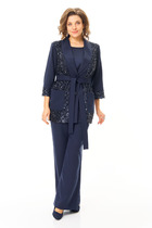 Костюм двухпредметный состоит из жакета и брюк. Элегантный дизайн костюма с брюками подарит комфорт и уверенность в себе. Жакет с центральной застежкой на 2 петли и пуговицы с прорезными функциональными карманами по переду. Рукав втачной двухшовный со шлицей декорированной пуговицами. Брюки прямые от линии калена, застежкой в боковом шве на потайную молнию. В комплект входит пояс с пряжкой. Костюм двойка отлично подойдет для офиса, для праздника, на каждый день для прогулок. Длина жакета 69 см, длина брюк 110 см