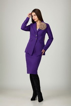 Комплект женский 2-х предметный состоящий из жакета и юбки выполненного из замшевой ткани. Жакет прямого с накладными карманами с клапаном. Спинка со средним швом. Рубашечный воротник. Спущена линия плеча. Рукав втачной одношовный по низу пата  с 2-мя  пуговицами. Застежка центральная на 5 пуговицы и петли. Жакет без подкладки.Юбка  А-силуэта  на обтачке. Застежка сзади  на потайную тесьму-молнию. Юбка на подкладке.