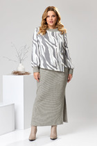 Комплект женский, из разных по фактуре тканей, состоящий из джемпера на трикотажной подкладке и брюк палаццо. Джемпер прямого силуэта, рукав втачной, одношовный. Горловина, низ рукава и низ изделия обработанны притачной трикотажной бейкой. Брюки палаццо, на притачном поясе с резинкой и тесьмой. У брюк - боковые карманы.