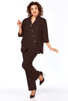 Мы представляем Вам новинку - трехпредметный комплект от бренда Мода-Юрс - блузон, топ и брюки. Блузон прямого силуэта выполнен из трикотажного полотна в сочетании с однотоном. По переду блузон с нагрудной вытачкой. По линии борта, низу переда и низу рукавов выполнены притачные планки. Линия плеча спущена, рукав одношовный. Застежка на петли-пуговицы. Топ полуприлегающего силуэта, с разрезами по бокам, по переду с нагрудной вытачкой. Линия горловины и пройм обработана подкройной обтачкой. Брюки прямые, на притачном поясе с резинкой.