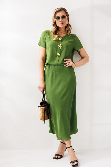 Блуза прямого свободного силуэта. По переду отделочная складка с декором в виде 3-х съемных брошей. По спинке средний шов. Горловина округлой формы. Рукава втачные, одношовные.