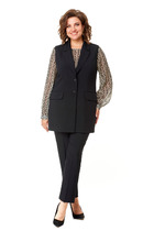 Костюм трехпредметный: состоит из топа, кардигана и шорт.Кардиган прямого кроя  с акцентным принтом. Горловина обработана рубашечным воротником с отрезной стойкой. Модель со слегка приспущенной линией плеча и рукавами длиной 7/8. Застёжка центральная на петли и пуговицы. По низу изделия разрезы. Топ на регулируемых бретелях с полукруглым вырезом. Удлиненные шорты прямого кроя, верхний срез представлен широкой резинкой, с карманами.