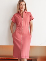 Туника полуприлегающего силуэта, выполнена из костюмно-плательного сатина. Модель без подкладки, с плечевыми накладками. Перед с нагрудными вытачками, направленными от пройм, и средним швом, в нижней части которого обработан разрез. Спинка с талиевыми вытачками и средним швом, в верхней части которого расположена застежка на потайную тесьму-«молнию», в нижней части-разрез. Ширина отделочной строчки по центральным разрезам переда и спинки – 4 см. В боковых швах высокие разрезы расположены от уровня талии до низа. Ширина отделочной строчки по боковым разрезам – 1 см. V-образный вырез горловины переда переходит в округлый по спинке. Рукав втачной, с асимметричным обтачным воланом по низу. Туника дополняется съемным декоративным цветком «роза», выполненным из основной ткани. Длина туники – 133,5 см (46-52 р-р), 135 см (54-62 р-р).