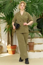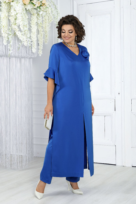 Длинная туника этого костюма не только подчеркивает его изысканный характер, но и служит важным элементом создания правильного силуэта для женщин с великолепными формами. Ее линии и длина прекрасно балансируют фигуру, придавая ей гармоничность и элегантность.