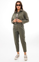 Брюки классические, длинные, прямого силуэта, с посадкой на талии, выполнены из ткани «крэш-вискоза». Модель без стрелок, с центральной застёжкой на тесьму-«молнию», на притачном поясе, застегивающемся на петлю и пуговицу. Спереди обработаны наклонные боковые карманы. Передние и задние половинки брюк с талиевыми вытачками, направленными от пояса вниз. Для лучшего прилегания брюк в области талии в поясе по задним половинкам вставлена эластичная лента. Длина брюк по боковому (с поясом) --107 см (50-52 р-р), 108 см (54-58 р-р).