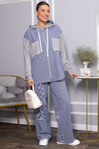 Комплект брючный 2-х предметный, состоящий из блузки, выполненной из плательной ткани, и брюк из однотонной ткани.