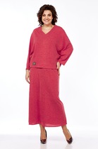 Комплект брючный 3-х предметный, состоящий из жакета, джемпера и брюк. Жакет прямого силуэта, выполнен из ткани «лен-вишер». Модель без подкладки, с плечевыми накладками и однобортной внешней застежкой с отрезными планками на 7 петель и 7 пуговиц. Перед с нагрудными вытачками, выходящими из пройм. По спинке и частично по переду настрочена кулиса, в которую втянут поясок из основной ткани. Для регулировки сборки по кулисе предусмотрены фиксаторы, концы пояса оформлены наконечниками. Горловина округлой формы со стояче-отложным воротником на отрезной стойке. Рукав втачной, длинный, с притачной манжетой, застегивающейся на 1 петлю и 1 пуговицу; по середине рукава настрочена пата, застегивающаяся на 1 петлю и 1 пуговицу, что позволяет регулировать длину рукава. Длина жакета - 71 см (46-50 р-р), 72 см (52-60 р-р), 73 см (62-66 р-р). Длина рукава (с манжетой) - 61 см. Джемпер полуприлегающего силуэта, выполнен из вискозного трикотажного полотна. Перед с нагрудными вытачками, выходящими из пройм. От горловины вниз застрочены 4 складки. Горловина переда и спинки округлой формы, по переду углубленная. Срезы горловин окантованы косой бейкой. Рукав втачной, короткий. Длина джемпера -60 см (46-50 р-р), 65 см (52-60 р-р), 67 см (62-66 р-р). Длина рукава – 24,5 см (46-50 р-р), 25,5 см (52-60 р-р), 26,5 (62-66 р-р). Брюки классические длинные, прямого силуэта, с посадкой на талии, выполнены из ткани «лен-вишер». Модель без застёжки, на притачном поясе, с эластичной лентой внутри. Передние половинки брюк с боковыми наклонными карманами. Длина брюк по боковому (с поясом)-103 см (46-54 р-р), 104,5 см (56-60 р-р), 106 см (62-66 р-р).