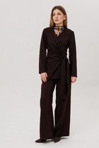 Этот вечерний костюм создан для женщин, которые ценят роскошь в деталях и хотят выглядеть безупречно на любом торжестве — будь то Новый год, свадьба, юбилей или праздничный вечер. Костюм сочетает в себе утончённость, комфорт и продуманную посадку, которые делают образ стройным, уверенным и безупречно нарядным. Лёгкая кружевная накидка из гипюра создаёт эффект многослойности и скрывает зону рук, делая образ благородным и элегантным. Силуэт свободный, комфортный, с аккуратной застёжкой на декоративную пуговицу. Кружевное красиво играет на свету и подчёркивает праздничное настроение.