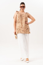 Джемпер прямого силуэта. Перед и спинка изделия прямые. Горловина круглая. Рукав втачной, длинный. Низ изделия на притачной планке из отделочной ткани.
